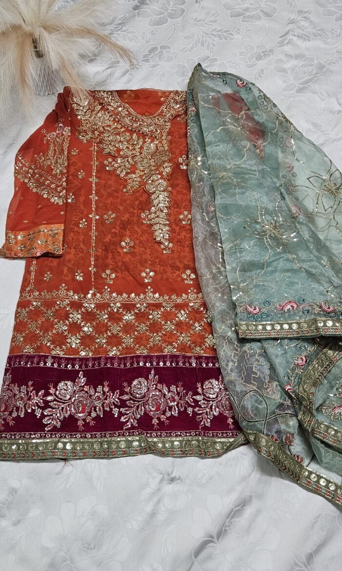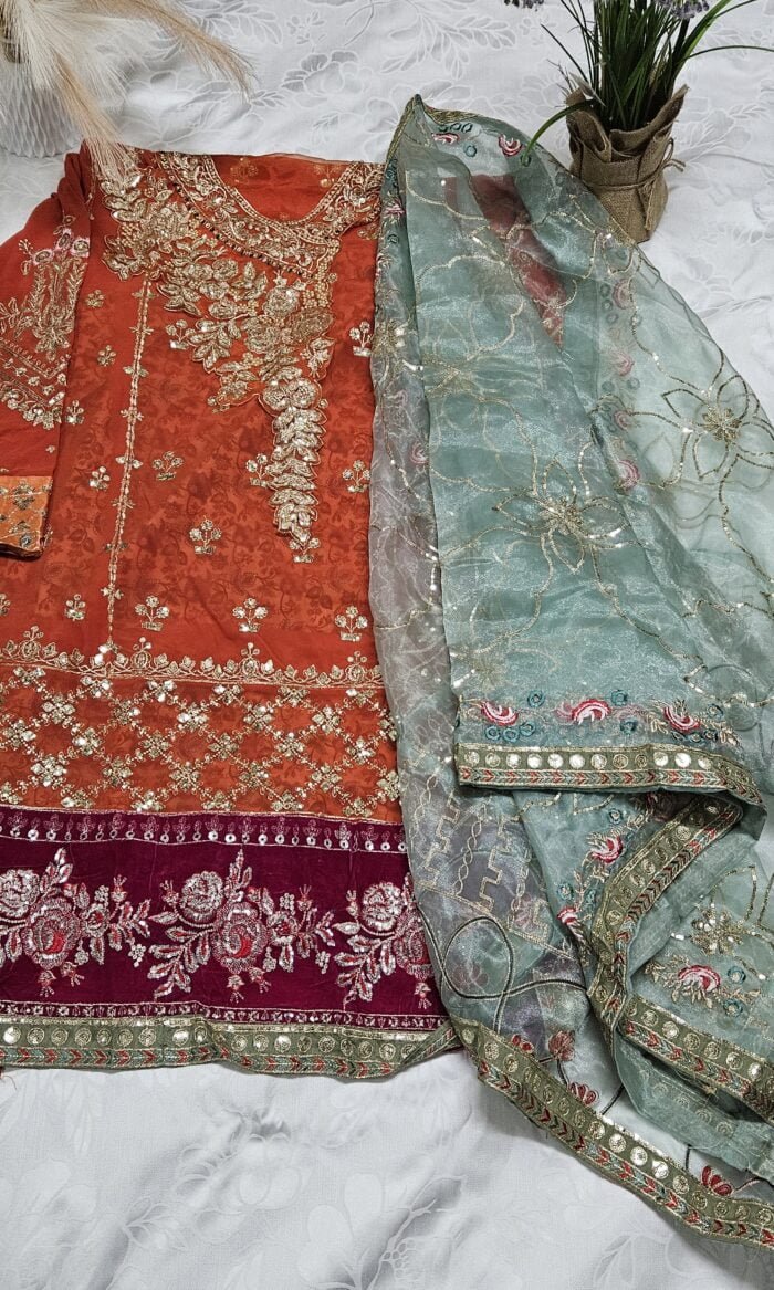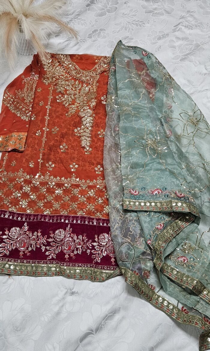 Fabric Description : Organza Dupatta with embroidery work | Length 43″.