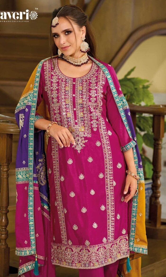 Heavy Chinon Kameez With Embroidery Work