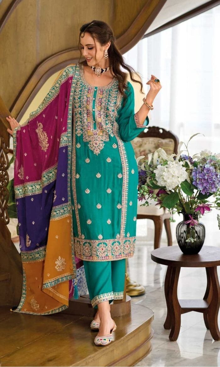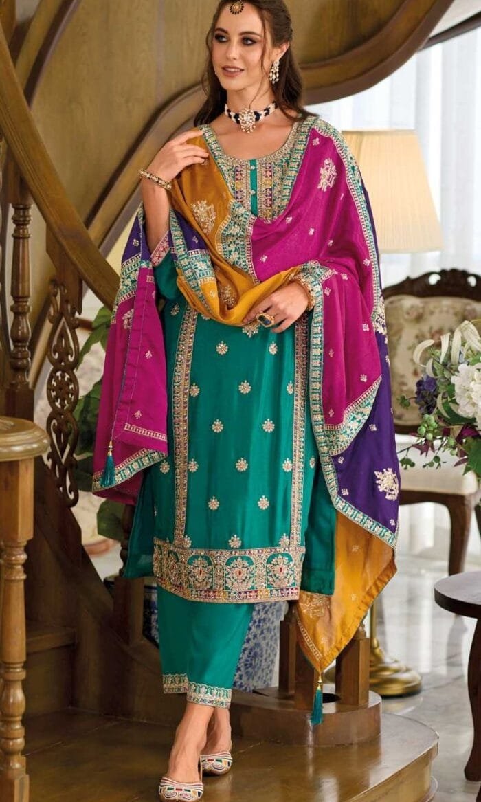 Fabric Description: Top: Heavy Chinon With Embroidery Work | Pant: Heavy Silk | Dupatta: Heavy Chinon With Embroidery